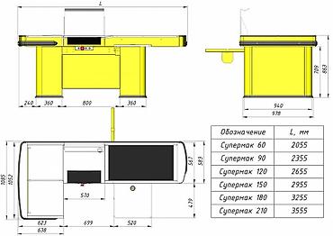 Кассовый бокс - модель СУПЕРМАК Ширина бокса 1050 Длина