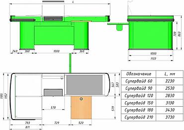 Кассовый бокс - модель СУПЕРВАЙД Длина транспортера, мм 900 Общая