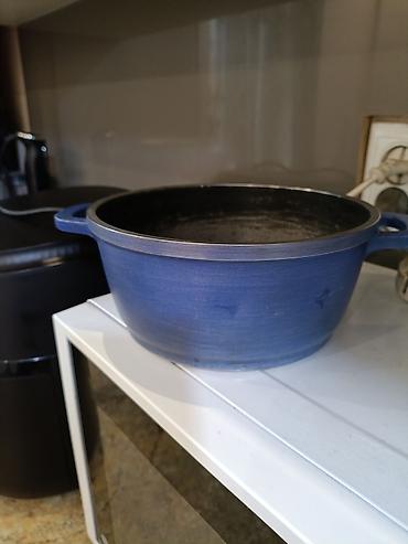 - Наружная сторона — синее покрытие, две боковые литые ручки для удобного хвата.