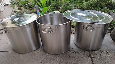 Качество! Кастрюля 40л. Эксплуатировалась в домашних условиях. Не мятая.не дырявая. Толстые стенки пищевого аллюминия. Крышки нет. 3900сом.