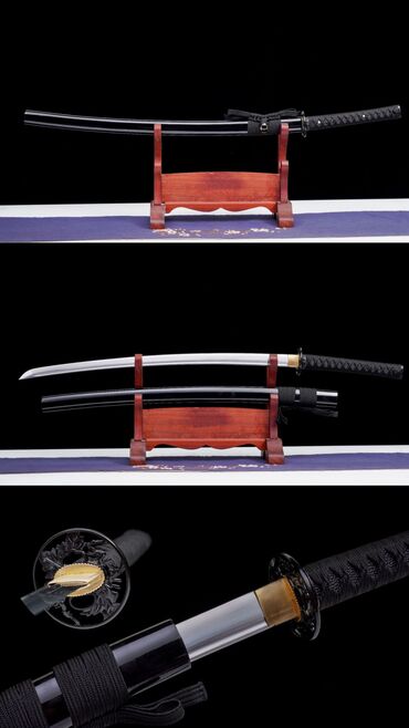 Все катаны ручной работы и идут в комплекте с подарочной деревянной коробкой и деревянной черной подставкой