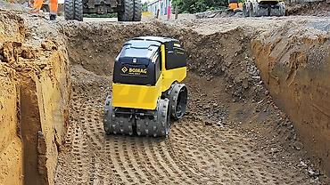 - Дистанционно управляемый траншейный каток для уплотнения грунта в узких траншеях, котлованах и на ограниченных площадках.