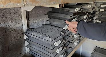 - Металлическая печь-очаг под казан: цилиндрический корпус с ножками, дверцей поддувала и зольником, отверстиями для тяги. Конструкция рассчитана на установку казана в посадочное отверстие по бортик.