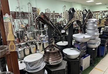 - Широкий выбор казанов: литой алюминий и чугун, классической полусферической формы. Разные объёмы — от небольших домашних до больших походных. Толстые стенки и дно для равномерного прогрева, плотно прилегающие крышки.