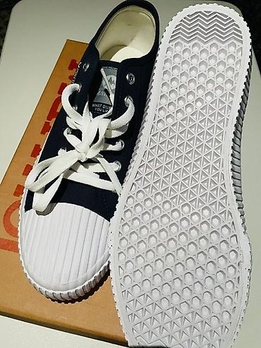 - Цвет: темно‑синий верх, белые шнурки и подошва