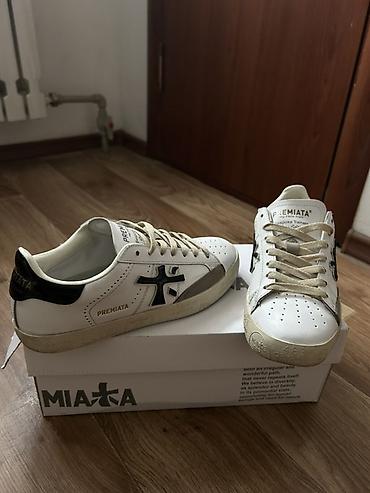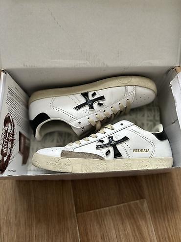 - Модель: низкие кеды Premiata, серия с фирменным логотипом на боковой панели и язычке.