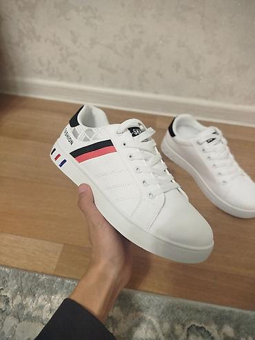 - Дизайн: минималистичный белый корпус, контрастная чёрная вставка на пятке; сбоку декоративные полосы черного, красного и синего цветов и надписи “FASHION / SPORT”. Небольшие цветные элементы у пятки по боковой части подошвы.