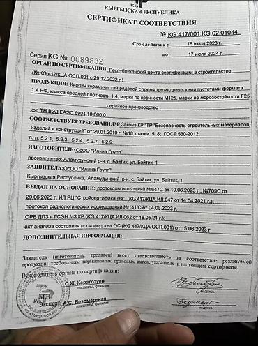 Кирпич 🧱 9. сомдон доставкасы менен Камаз,4000шт Зил 2000шт Портер 1000шт Любой количество заказ берсенер болот Любой жакка количество точный.✅✅✅🏭🏭прямой заводдон барабыз 🏭🏭🏭✅✅✅✅✅