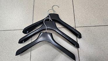 Большое количество вешалок для одежды, черные. Цена 15 сом за штуку В наличии: - Вешалки треугольной формы увеличенного размера с дополнительными изгибами на плечах — удобно для пиджаков, пальто...