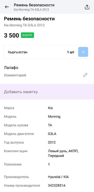 Правый передний ремень безопасности в сборе - Производитель: Takata Korea Co., Ltd. - Маркировка на ярлыке: 88820-A9100 (R) - Модель механизма: TKK-AH6-Z18 - Соответствие стандартам: KMVSS 112-3 -...