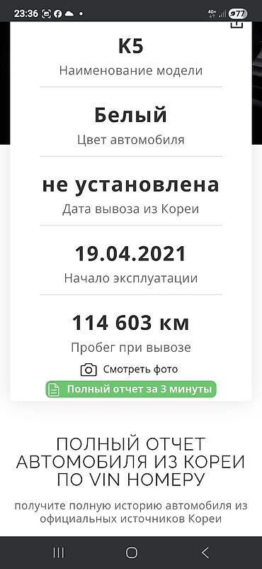 Kia K5 ГАЗ 2 куб 2020 г Родной пробег 219000 км Родной окрас Состояние 5+ Заказ берсенер да бул баага келбейт седан, чёрный цвет кузова. Основные характеристики: - Год выпуска по шильдику: 2...