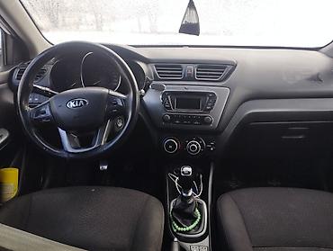 Kia Rio седан, белый цвет. Кузов с фирменной решёткой радиатора, линзованные фары, LED ДХО, задние фонари с горизонтальной графикой. Литые диски, зимняя резина, повторители поворота в зеркалах, шил...