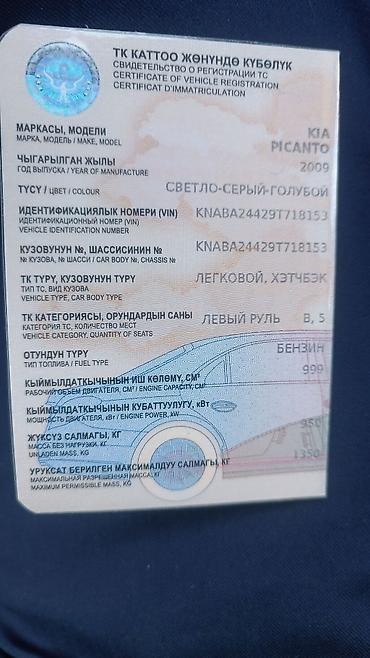 Kia Picanto: 2009 г., 1 л, Бензин, Хэтчбэк