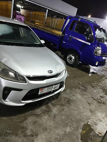 Kia Rio, седан, белый цвет с черными акцентами переднего бампера. Российская/киргизская регистрация на фото (номер 03). 4 двери, тонированные стекла, антенна «акулий плавник». Легкосплавные диски, ...