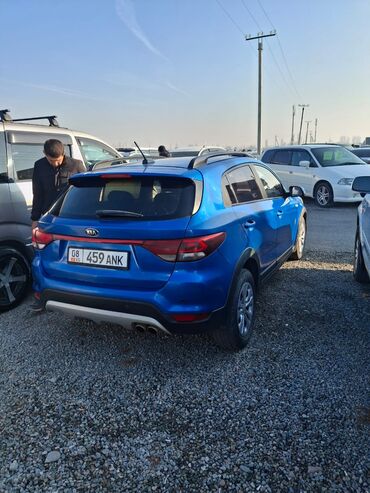 KIA Rio X-Line (синего цвета), городской универсал-кросс. Особенности и оснащение: - Кузов: 5‑дверный хэтчбек повышенной проходимости с рейлингами на крыше и черным пластиковым обвесом по периметр...