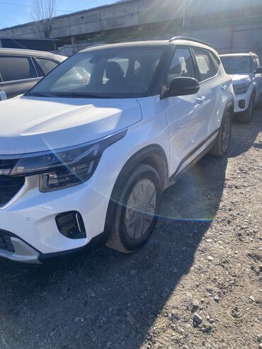 Kia Seltos, белый кузов, актуальный логотип Kia.
