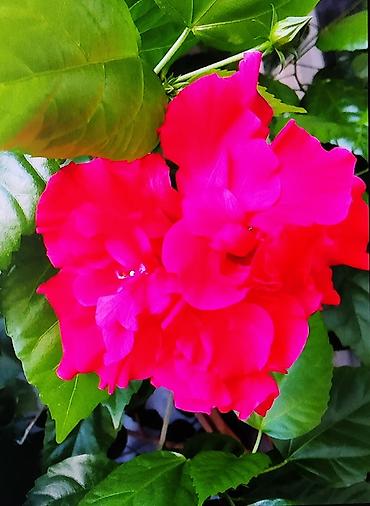 Гибискус (Hibiscus rosa-sinensis) в горшках - Сорт с крупными махровыми алыми цветками - Растения хорошо облиственные, с ярко‑зелёной глянцевой листвой - Есть бутоны на цветение - Формат: взрослые...