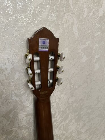 - Голова грифа с прорезями, металлические колки с декоративными пластинами и белыми ручками