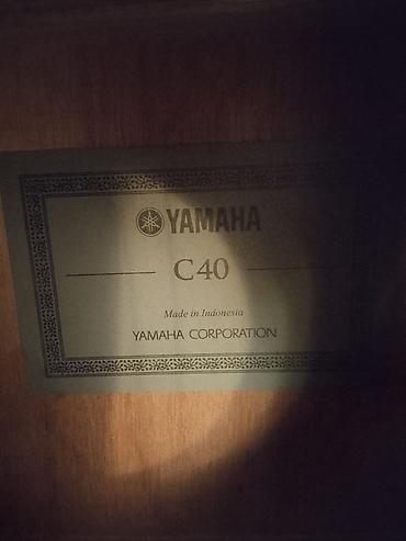 Классическая гитара Yamaha C40 - Полноразмерный корпус 4/4, нейлоновые струны — удобна для обучения и академической игры. - Модель: Yamaha C40 (шильдик внутри корпуса). - Верхняя дека — ель; обеча...