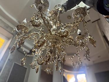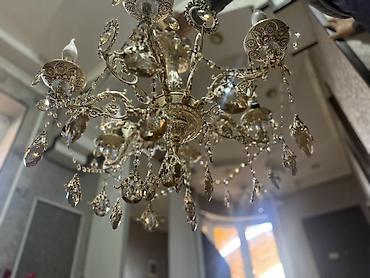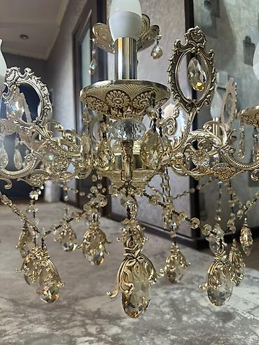 - Свет: равномерный, с яркими переливами от хрусталя; рекомендуется использовать светодиодные лампы «свеча» E14.