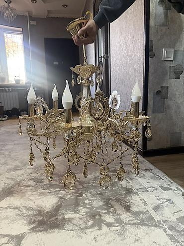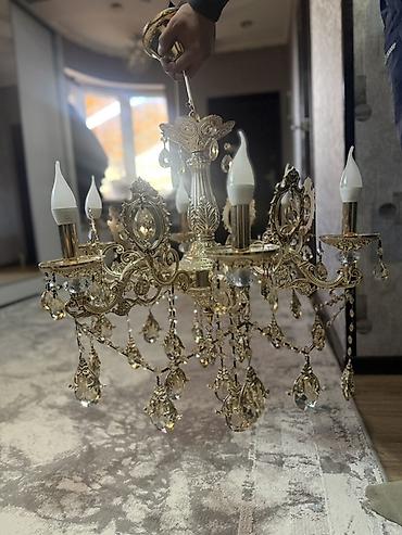- Плафоны/патроны: 6 рожков под лампы «свеча» (видна резьба стандарта E14).