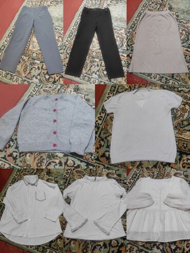 Женские вещи в хорошем состоянии,размеры от 44 до 50(юбка),рубашку покупала за 2000 сом,а сейчас любая вещь за 100 сом.