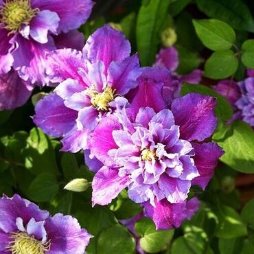 Яркий сорт с насыщенными сиренево-фиолетовыми цветами. Быстро растёт и создаёт густую зелёную стену — идеален для заборов и стен.