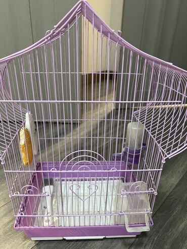 Клетка для мелких птиц - Материал: металлические прутья с порошковым покрытием, пластиковый поддон розового цвета. - Размеры ориентировочно: высота около 40–45 см, ширина/глубина около 30–35 см (п...