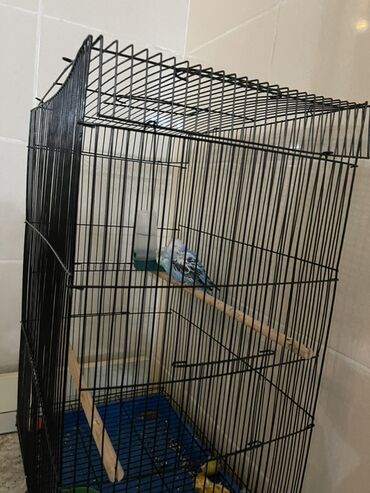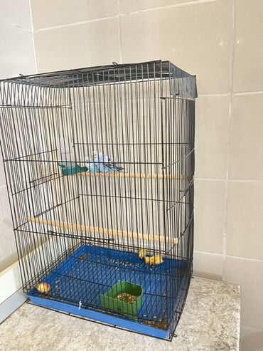 Просторная клетка для мелких птиц СРОЧНО продается клетка с двумя попугаеми УСТУПКА БУДЕТ - Материал: металлические прутья, порошковая окраска в голубой цвет; поддон из пластика с выдвижной белой ...
