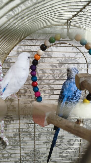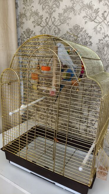 2 Волнистых попугая и Клетка для волнистых попугаев с комплектом аксессуаров.
