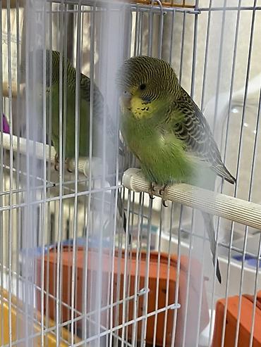 Габариты ориентировочно средние/крупные для волнистых (визуально — высокая прямоугольная форма, достаточная ширина для перелётов между жердочками).