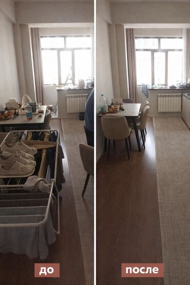 Результат — свежий воздух, сияющие поверхности и визуальный порядок в каждой зоне: от прихожей до санузлов и кухни.