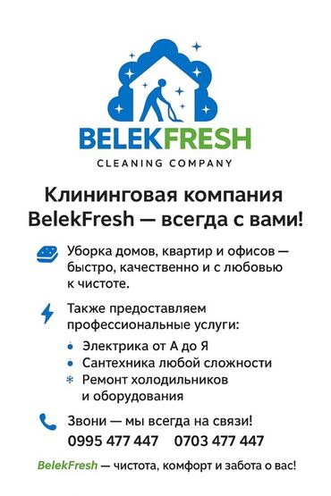 Клининговые услуги - Профессиональная уборка квартир, домов, офисов, коттеджей и различных помещений - Генеральная и поддерживающая уборка - Влажная уборка всех поверхностей - Мытьё окон - Химчист...