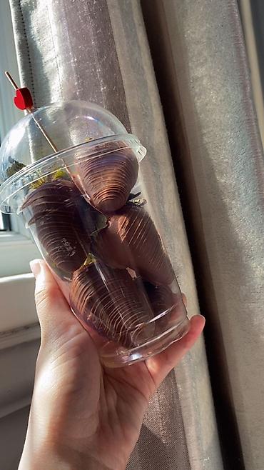 Клубника в шоколаде в порционном стакане - Свежая крупная клубника, покрытая молочным шоколадом. - Акуратная текстурная глазировка «бороздками» по всей ягоде. - Сохранены хвостики для удобства под...