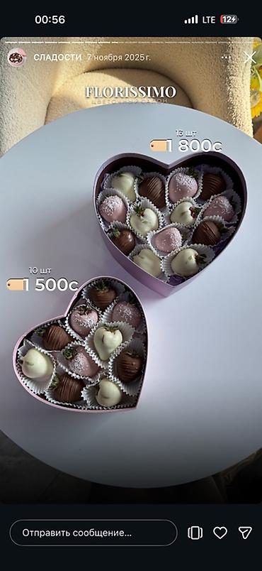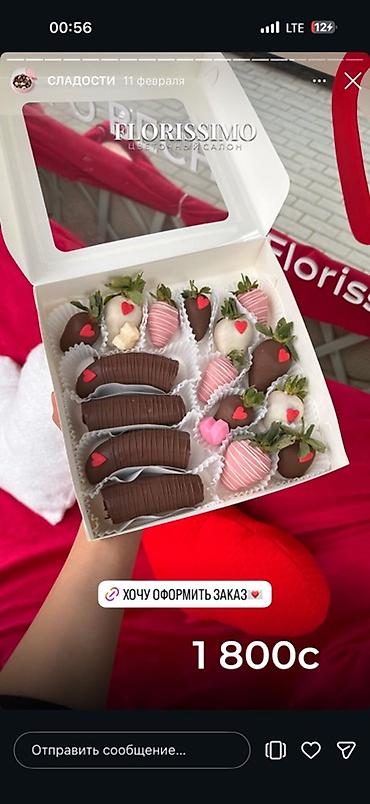 - свежая крупная клубника, покрытая молочным, тёмным и/или белым шоколадом;