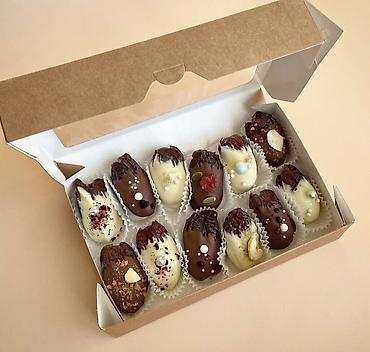 - Коробка-ассорти с клубникой и мини-рулами/трубочками в шоколаде — 1800 с.