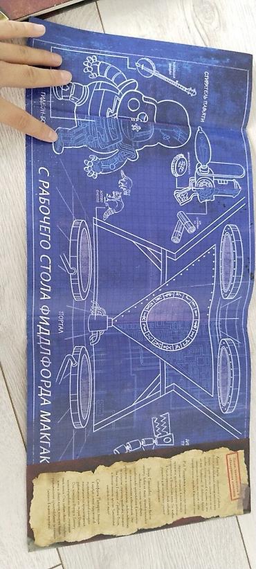 - Содержимое: записи, рисунки, схемы и «секретные» материалы из вселенной Gravity Falls. Внутри разворот с чертежом/плакатом «С рабочего стола Фиддлфорда Макгакетта» и текстовыми заметками.