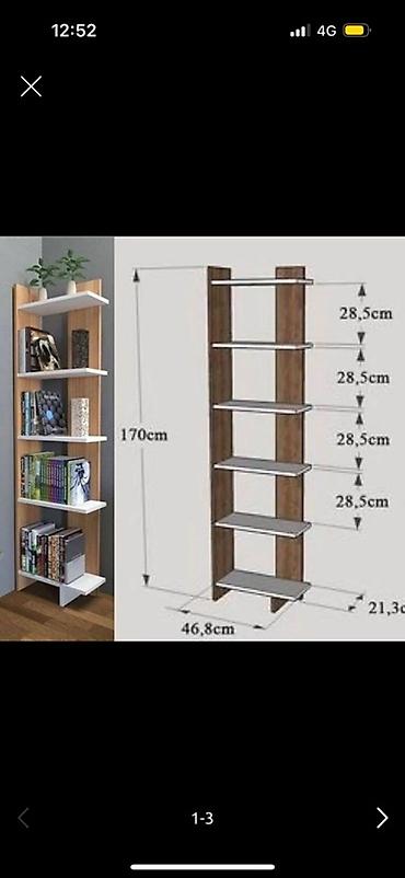 - Конфигурация: 6 полок, расположенных «шахматкой» слева/справа от центральной стойки — удобно для книг, журналов, декора, растений, фоторамок и т. п.