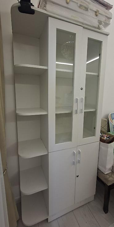 Шкаф срочно сатылат качество магазинге аптека стоматология болот Белый книжный/стеллажный шкаф с нижними дверцами - Конструкция: двухсекционный шкаф с открытыми полками в верхней части и закрыты...