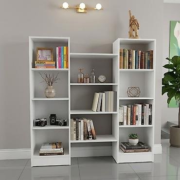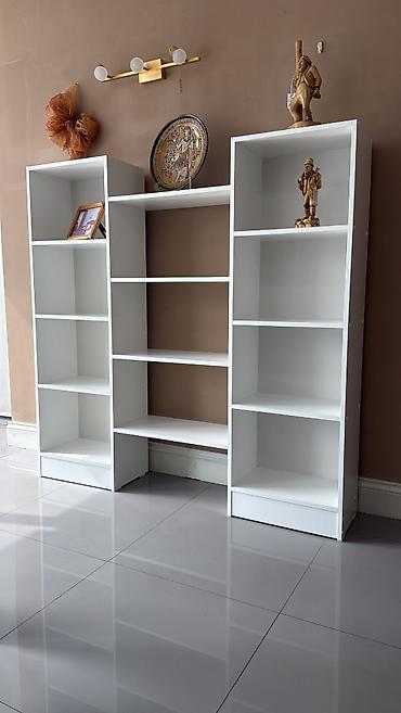 - Конфигурация: три вертикальных секции с разной высотой, объединённые центральными полками