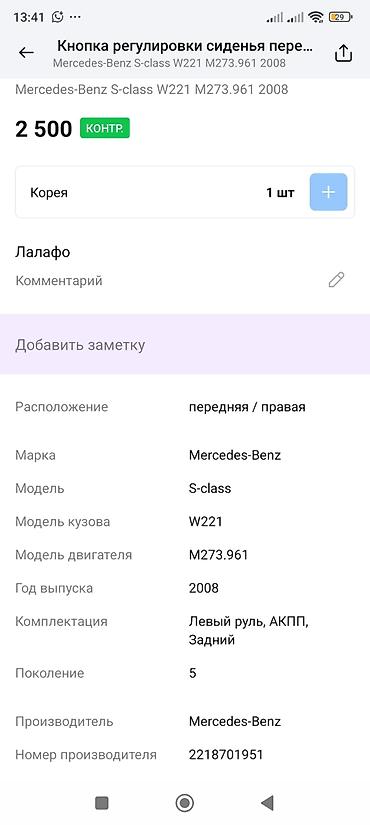 Кнопка блока управления сиденьем передняя правая для Mercedes‑Benz S‑Class W221