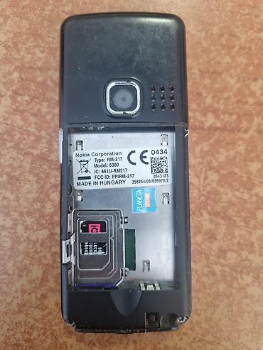 - Задняя крышка со съемной батареей; под крышкой: слот SIM, наклейка с данными аппарата (Model 6300, Type RM‑217, Made in Hungary).