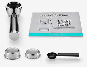 - В комплекте: металлический портафильтр, фильтры на 1 и 2 порции, мерная ложка-темпер, инструкция.