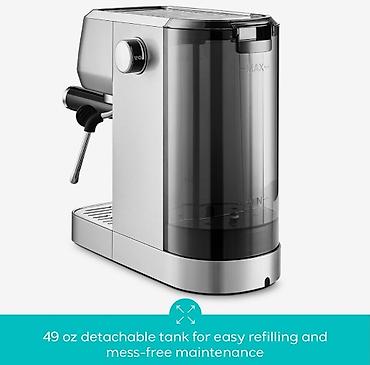 - Компактная рожковая кофеварка из нержавеющей стали для приготовления эспрессо, лунго, латте и капучино.