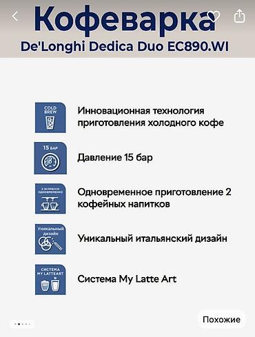 - Приготовление: эспрессо, двойной эспрессо, капучино/латте с ручным капучинатором, холодный кофе Cold Brew.