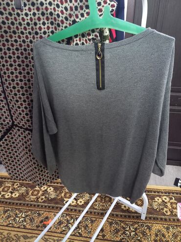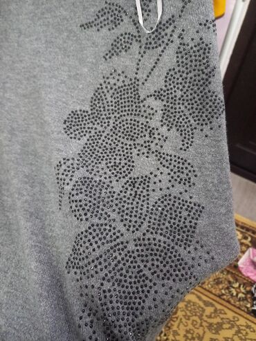 Женский свитер светло‑серого цвета с ажурной отделкой - Мягкая фактурная вязка по всему полотну - Круглая горловина - Украшение: объемные вышитые цветы из тонкой сетки по линии плеч/верха переда -...