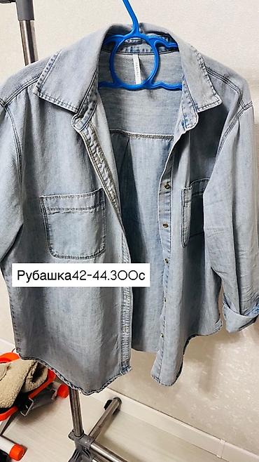 - Светло-голубой деним, два накладных кармана, планка на кнопках, длинный рукав