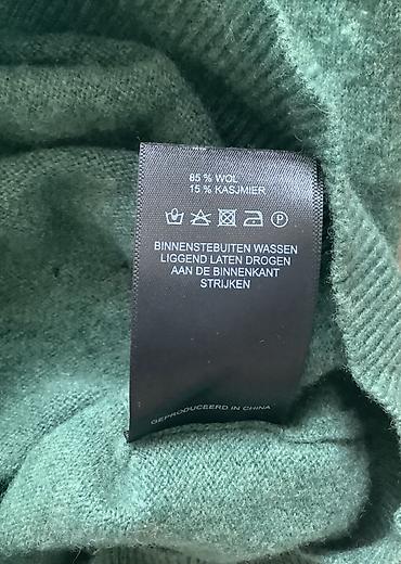 - Уход (по ярлыку): стирать вывернув наизнанку, сушить в разложенном виде, гладить с изнанки; не отбеливать, не сушить в машине
