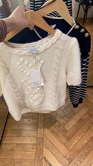 Свитер вязанный шерстяной. в отличном состоянии. от российского бренда, турецкий производитель. носилост 2-3 раза. бежевого цвета в фситашковую полоску. отлично подойдёт с джоггерами (см.профиль).