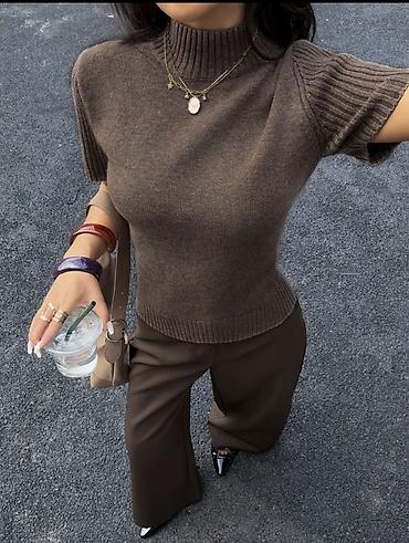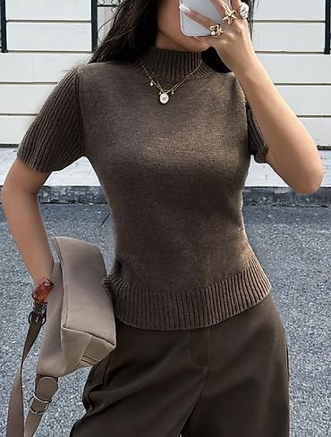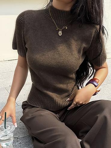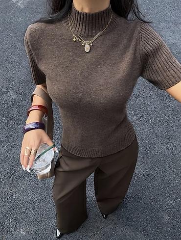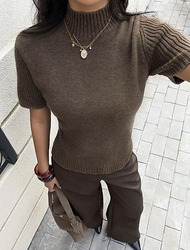 Женская вязаная кофточка с полугольфом и коротким рукавом (машинная вязка премиум качества)
